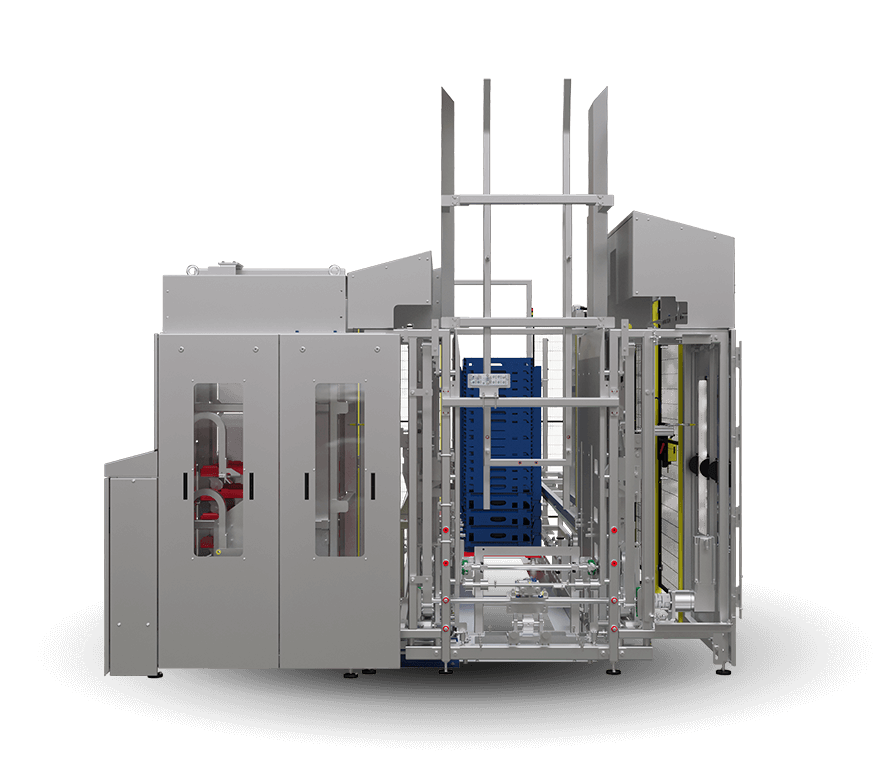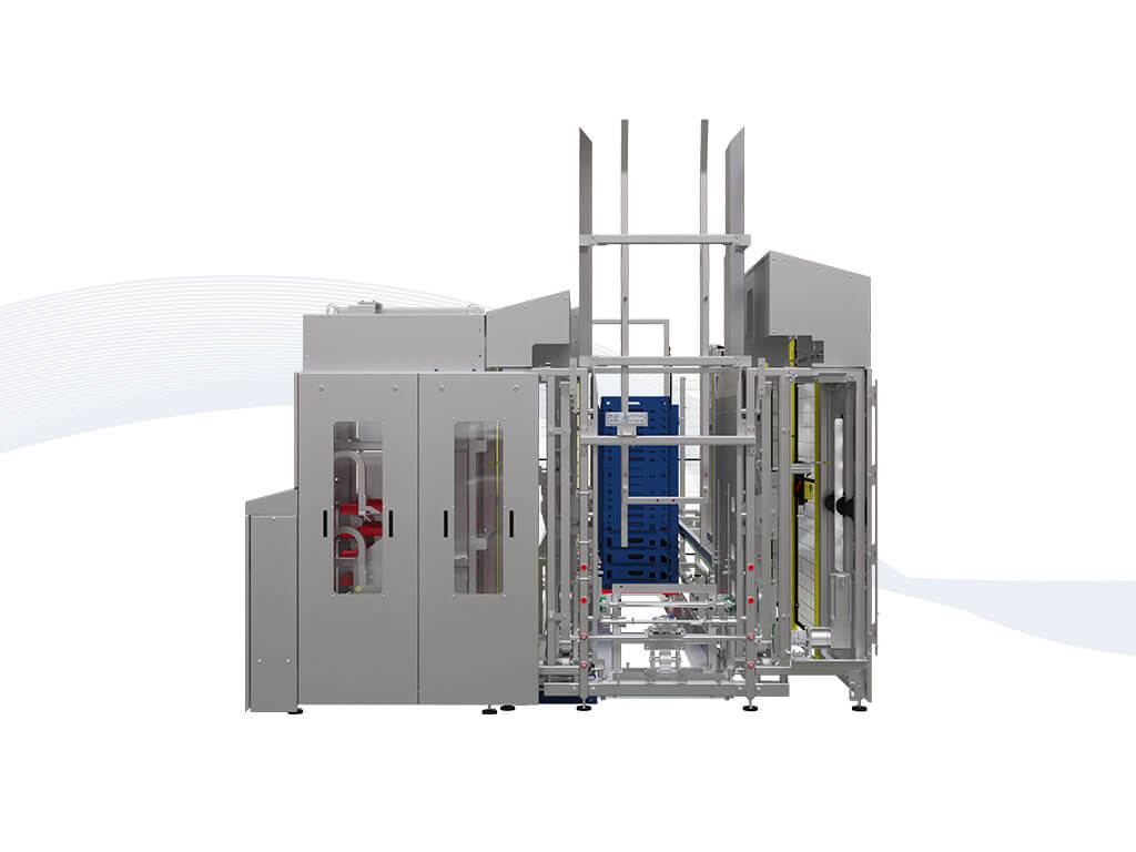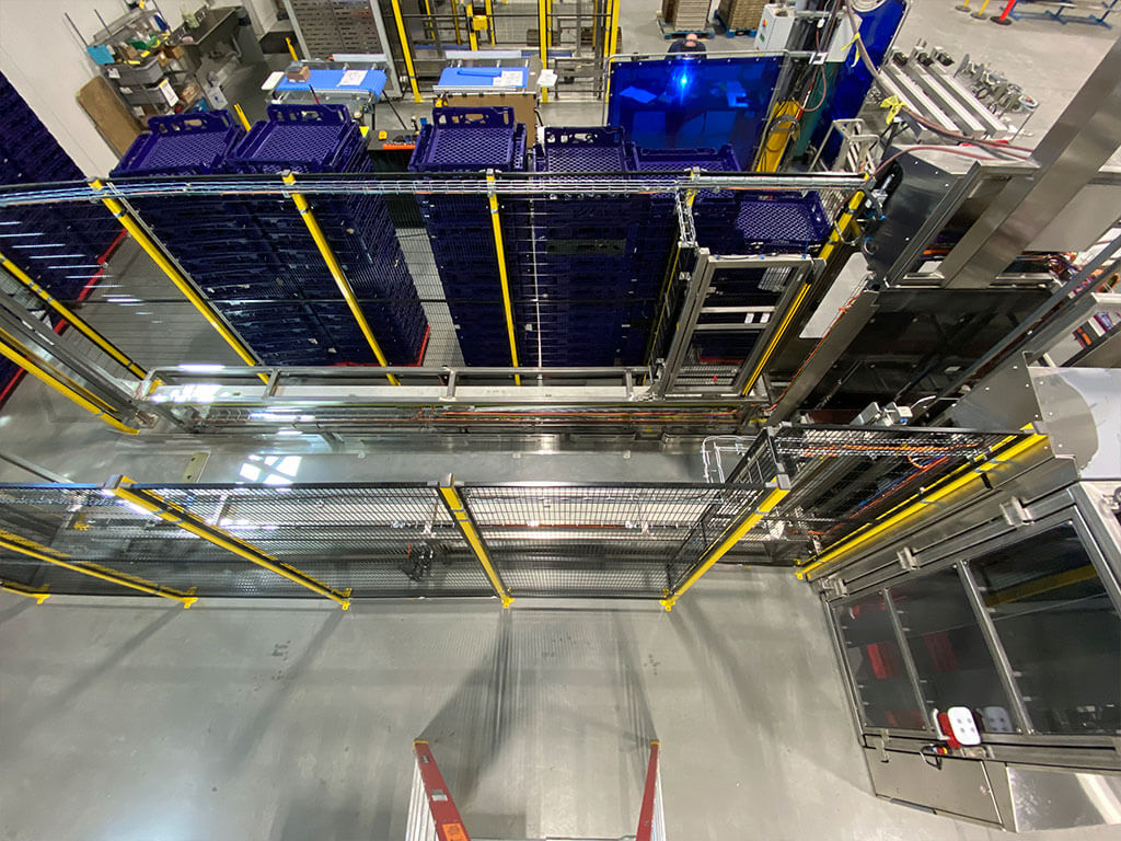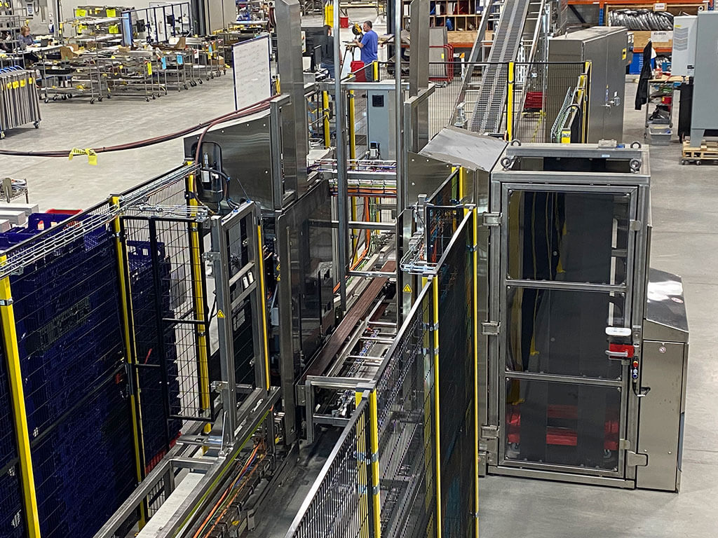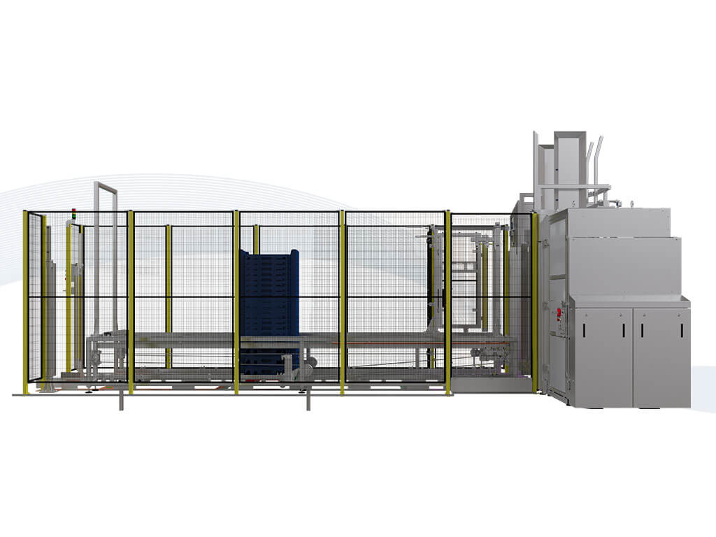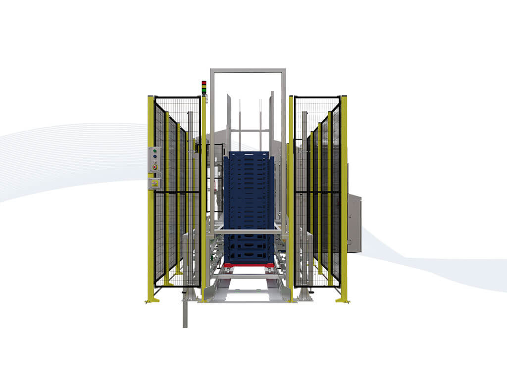 baskets from dollies and feed them back into the production line, streamlining empty basket management.
