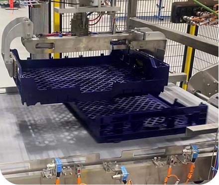Rationalise la livraison des paniers et plateaux vides aux lignes de production, minimisant ainsi les temps d’arrêt et la main-d’œuvre.